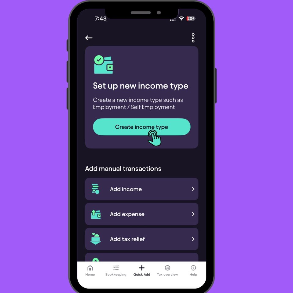 After clicking on Quick add, Choose 'Create income type' to add Foreign Income in the Pie app.Choose “Create Income Type”