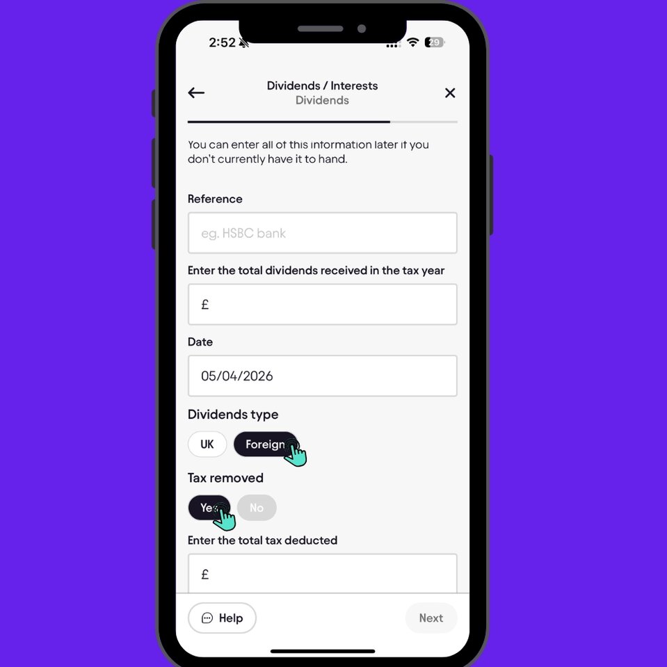 If you receive dividends or interest from outside the UK, you’ll need to add this to your Pie App so your tax overview stays up to date. Foreign income can feel a bit complicated, but adding it in Pie only takes a few taps.